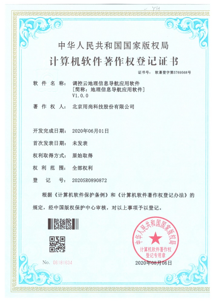 2020.08.06-调控云地理信息导航应用软件【简称:地理信息导航应用软件】V1.0.0